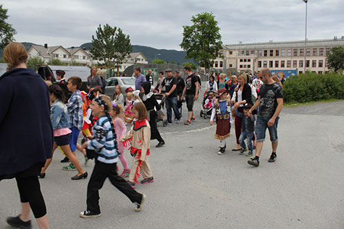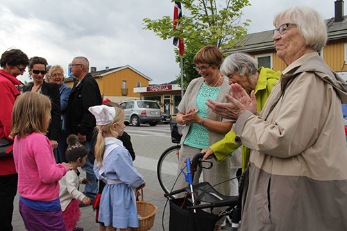 Barna var lykkelige over dette, men det var sannelig også de som starta det hele i Husmorforeningen. Noen av dem var til stede og applauderte deltakerne med de flotte og fargerike kostymene.